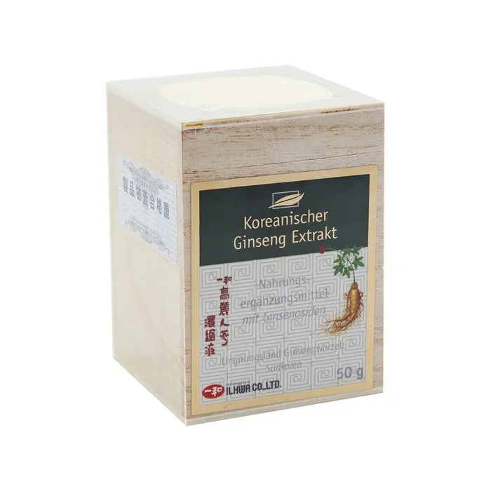 Nahrungsergänzungsmittel mit Ginsenosiden Allgemein: Korea gilt als die Heimat des Ginsengs. Aufgrund der Klima- und Bodenbeschaffenheit herrschen hervorragende Wachstumsbedingungen für diese seit Jahrtausenden bekannte Heilpflanze. Zutaten: 100 % Dickextrakt aus Ginsengwurzeln (Panax CA Meyer) (Extraktionsmittel: Ethanol). Empfohlene Dosierung: 1 Messlöffel (innen) in heißer Flüssigkeit (ca. 150 ml) auflösen und trinken. Nach Belieben mit Honig süßen. Ein Messlöffel enthält 500 mg Ginseng-Extrakt mit 6 mg Ginsenosiden (nach Pharm. Eur.). Zur Anwendung bei Erwachsenen und Jugendlichen ab 12 Jahren. Eine Wechselwirkung mit Arzneimitteln zur Regulierung des Blutzuckers und der Blutgerinnung kann nicht ausgeschlossen werden. Nicht während der Schwangerschaft und Stillzeit verzehren.