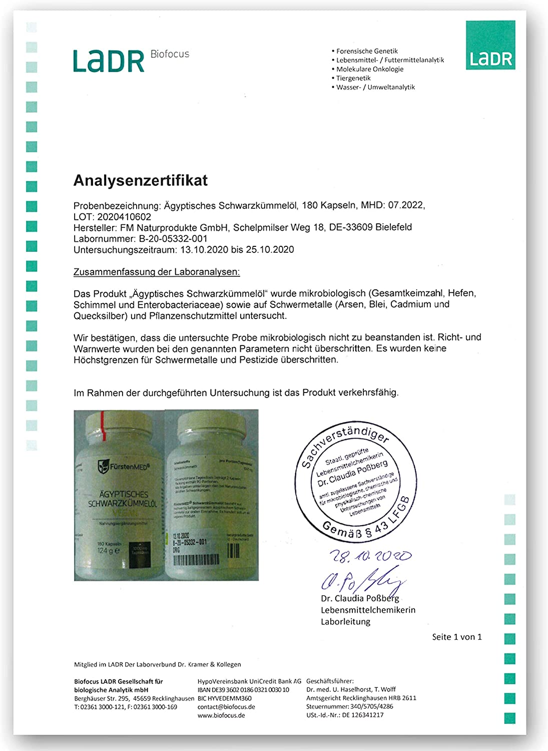 - The best for your health: German production (made in Germany) under the highest quality standards (ISO & HACCP) as well as strict hygiene guidelines. The company FürstenMED stands for premium quality tested in independent laboratories and is certified organic according to EC Öko regulation