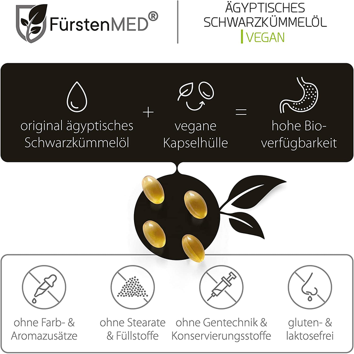 - Natural effect: pure vegetable – we use only the best cold-pressed Egyptian black cumin oil for our capsules and thus offer an optimal alternative for conventional black cumin oil capsules with a too intense and sharp taste