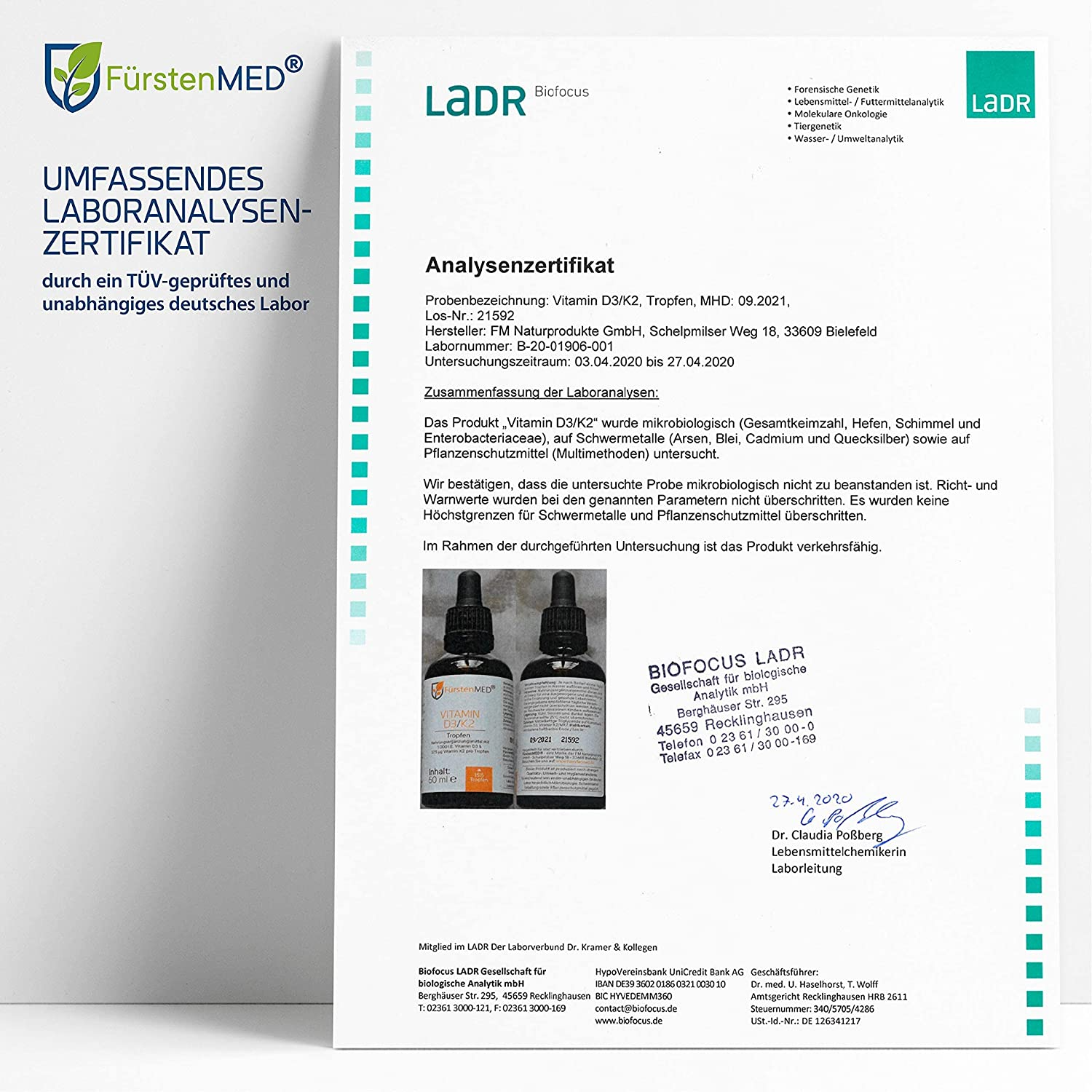 - Premium quality: vitamin D3 (cholecalciferol) and vitamin K2 (as a natural menachinone MK7, extracted in the all trans form from Natto) dissolved in high-quality MCT oil from coconut and elaborately laboratory tested for the discerning customer with optimal effect