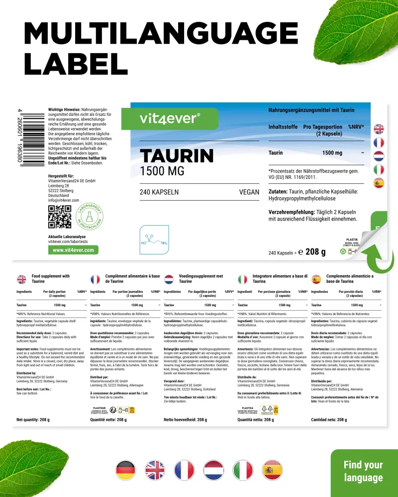 الحد الأدنى لكمية المنتج "Taurine - 750mg, 240 capsules" يساوي 1.