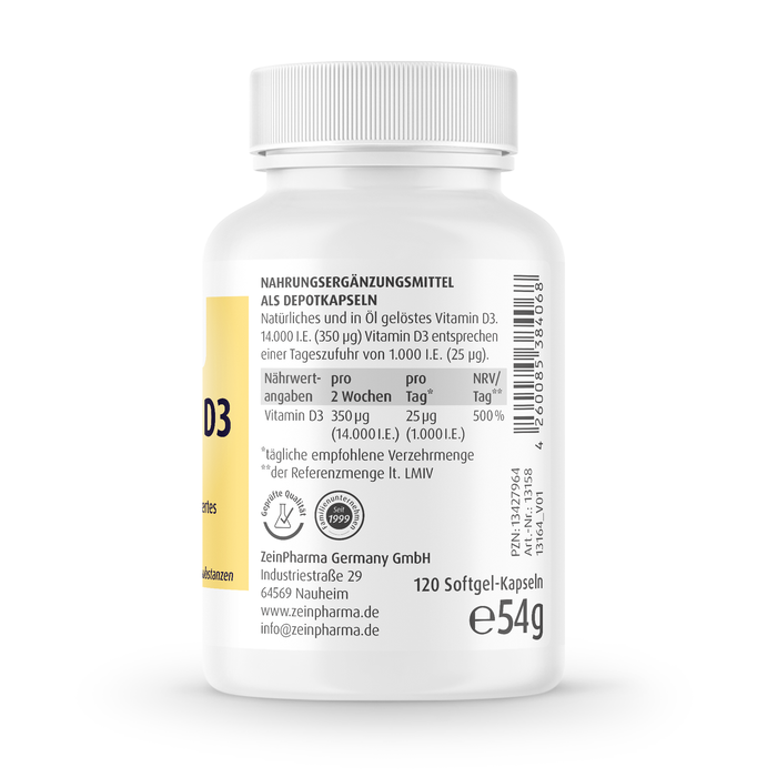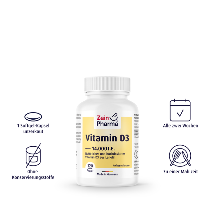 - Optimal vitamin D3 supply with only one softgel capsule every fortnight