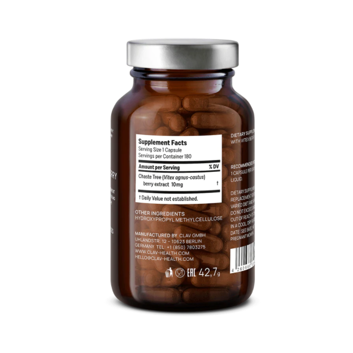 - Highly dosed with 10mg Agnus Castus extract per daily dose