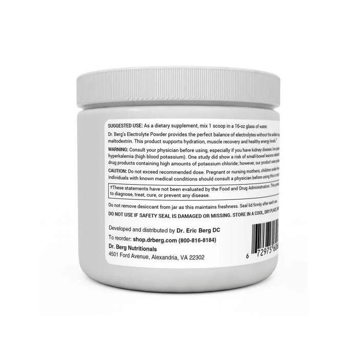 Dr. Berg’s Electrolyte Powder supports hydration, healthy muscles, and high energy. The formula is mixed with potassium -- the often-missed ingredient for peak performance. This electrifying combination supports energy levels from your tiniest cells to your full-body workouts. All without the sugary junk that slows you down.