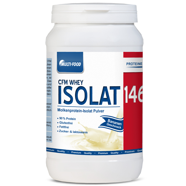 The multi-food product CFM Whey Isolate 146 contains bioactive CFM whey protein isolate with the highest possible biological value. CFM whey protein isolate is characterized by a particularly high content of natural protein components (bioactive whey isolate peptides), contains natural calcium, has a high proportion of essential and non-essential amino acids, is fat-free, low in lactose and sugar, gluten-free and without genetic engineering. The protein isolate contained in CFM WHEY Isolate 146 contributes to building and maintaining muscles and normal bones. Whey isolate should be consumed as part of a varied and balanced diet and a healthy lifestyle.