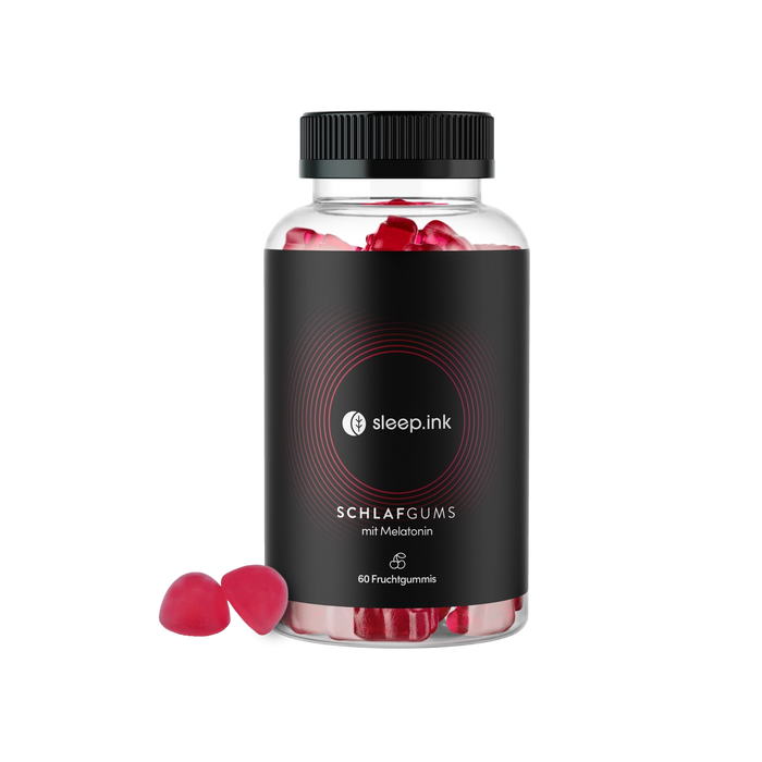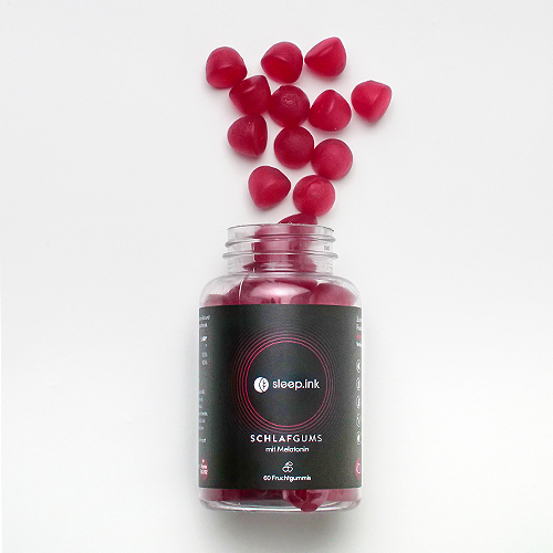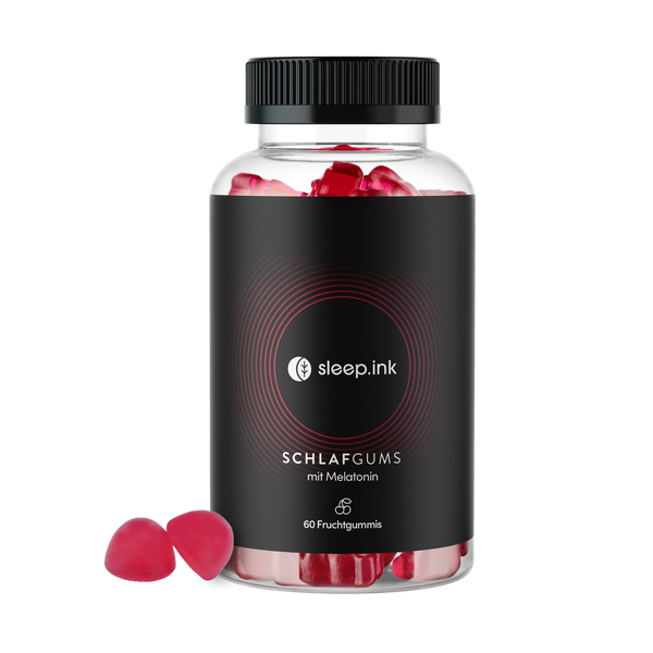 Good sleep has never been so delicious. The vegan and sugar-free fruit gums from sleep.ink are the functional bedtime treat 2.0. The high-dose formulation consists of melatonin for better sleep and vitamins B12 and B6. The innovative fruit gums taste irresistibly delicious thanks to natural flavors of cherries. A can of sleep gums contains 60 highly functional fruit gums and is sufficient for at least 30 nights with the recommended daily dose of 2 fruit gums (0.5 mg melatonin per fruit gum).