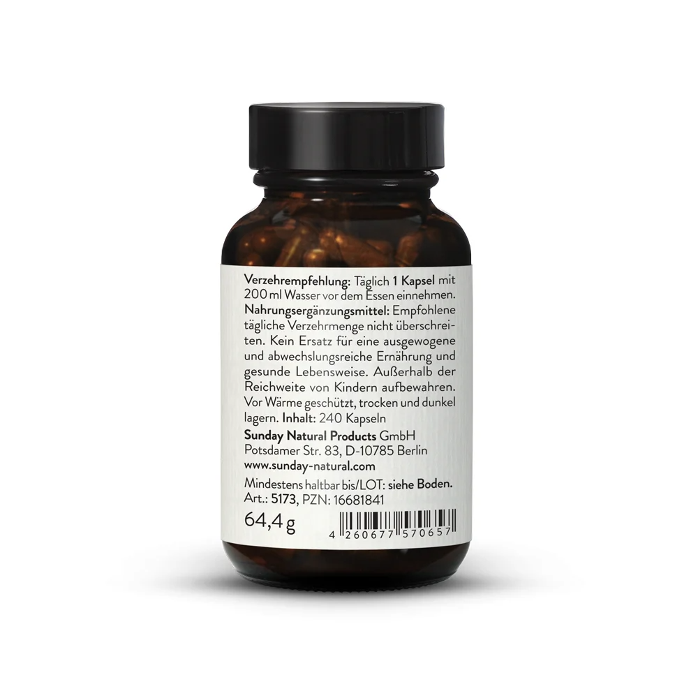 Our bioactive, premium Zinc Complex Ultra supplies 25mg elemental zinc in 8 ultra pure, organic forms of zinc as well as 100mg of naturally sourced vitamin C in a full-spectrum formula that provides a well-rounded and bioavailable zinc supply. For the immune system, fertility, fat metabolism, vision, skin, hair, nails, and protein synthesis. 100% vegan with no additives. 240 capsules