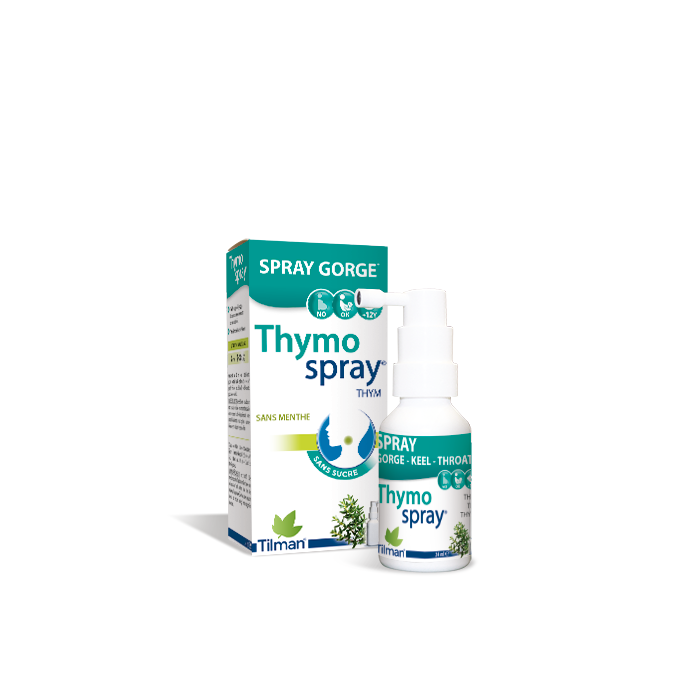 Thymo Spray ist ein Spray mit Thymian für den Hals . Thymian wird wegen seiner wohltuenden und beruhigenden Wirkung auf den Halsgeschätzt.