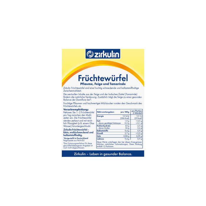 What are Circulin fruit cubes ? Circulin fruit cubes are a small, fruity snack that contains fiber. figs and Indian dates (tamarind) promote natural digestion. In addition, the fig contributes to a healthy balance of the intestinal flora. >span class="SYZYGYStandard">Circulin fruit cubes can support digestion and relieve the intestines. Fruity plums and high-quality milk sugar round off the taste of the fruit cubes .