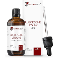 FürstenMED Lugol's solution 5% - laboratory tested, vegan & completely manufactured in Germany 100ml iodine potassium iodide solution (5%) Original recipe based on Jean Guillaume Lugol Tested ingredients according to the European Pharmacopoeia (Ph. Eur.) incl. enclosed...