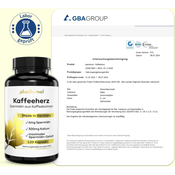 Plantomol Kaffeeherz Spermidin aus Kaffeebohnen (Coffee Heart Spermidine From Caffeine Beans 120 Capsules)