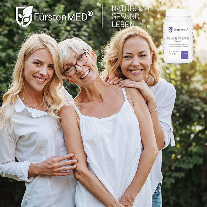 The FürstenMED® monk's pepper extract capsules come from German ISO and HACCP-certified production in strict compliance with the highest quality standards. The deliberate avoidance of additives such as magnesium stearate (magnesium salt of fatty acids) or titanium dioxide ensures improved bioavailability.