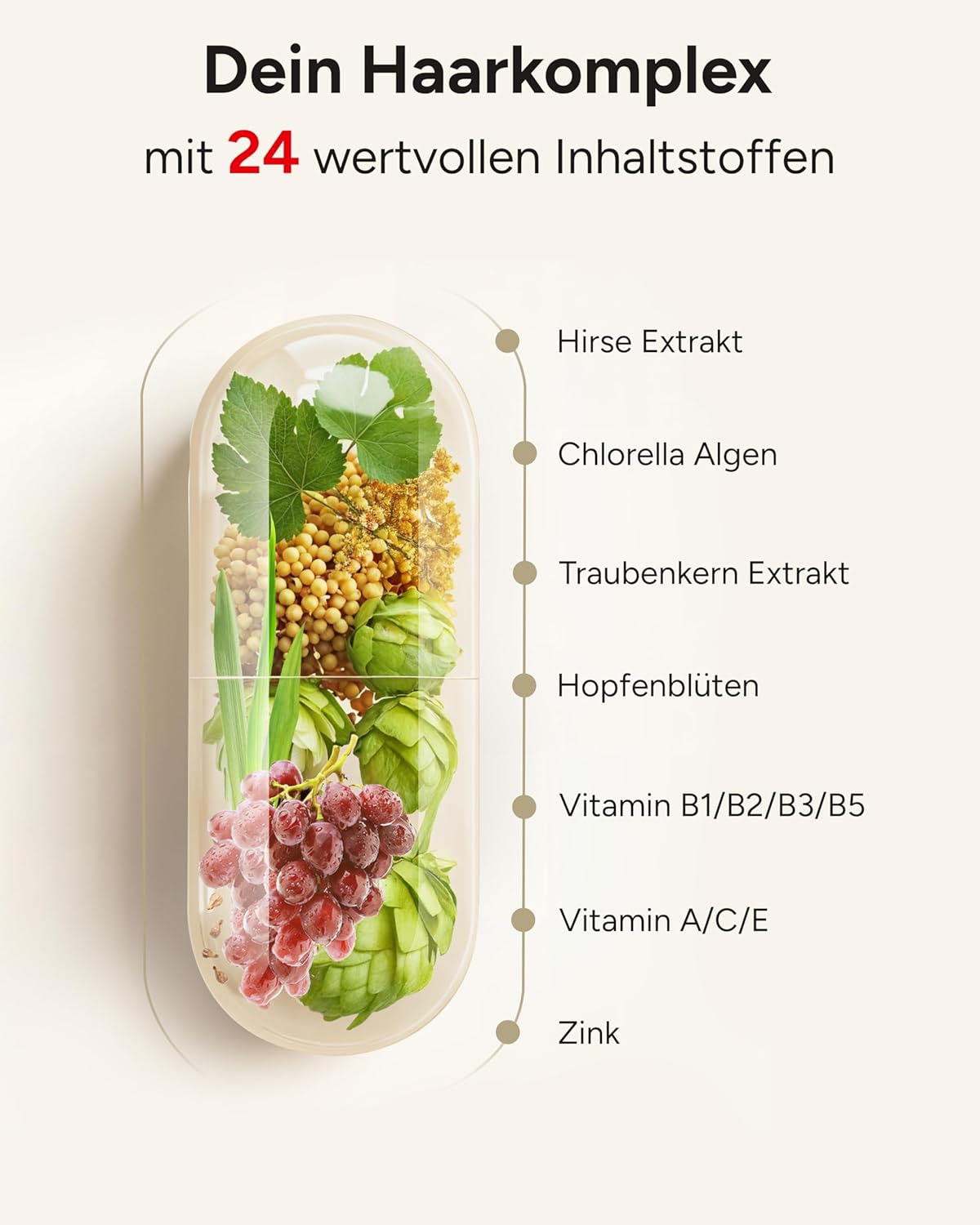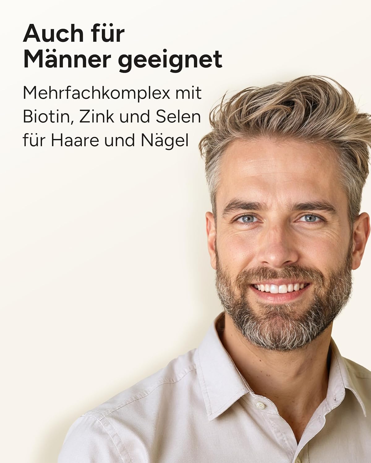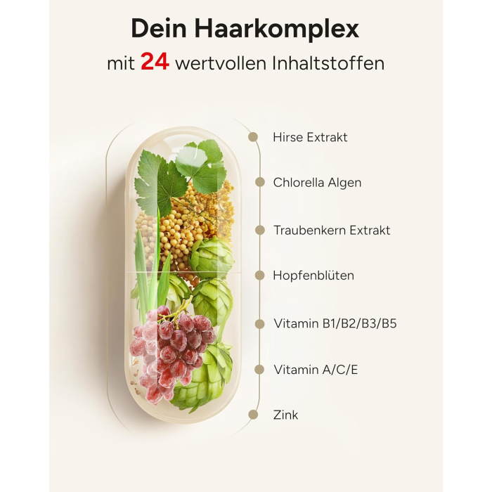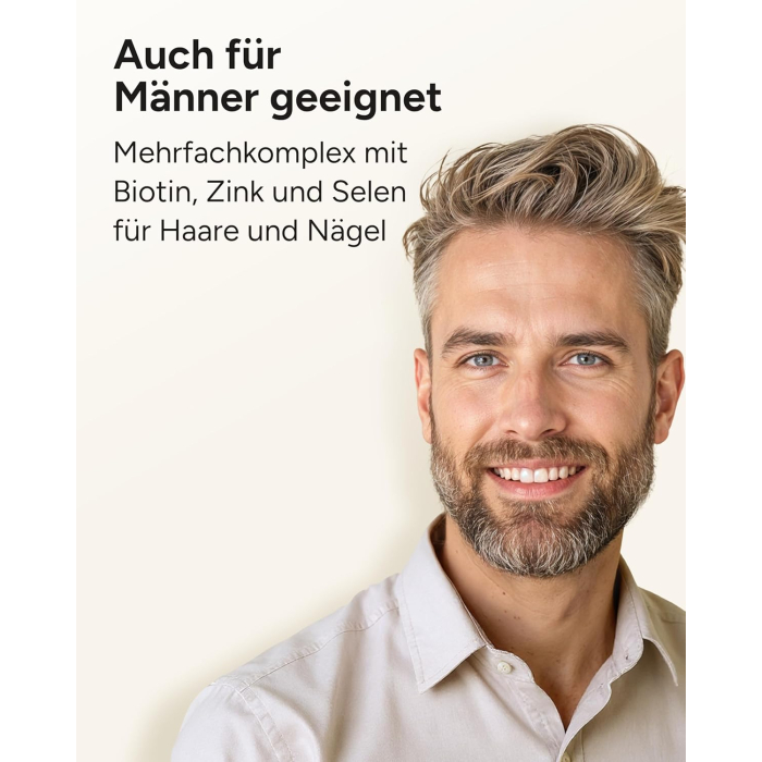 - Hair vitamins for women and men: biotin supports normal skin and hair, zinc also promotes normal nails
