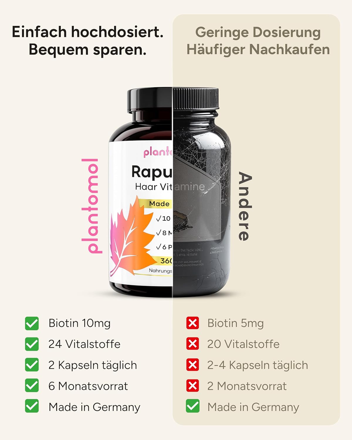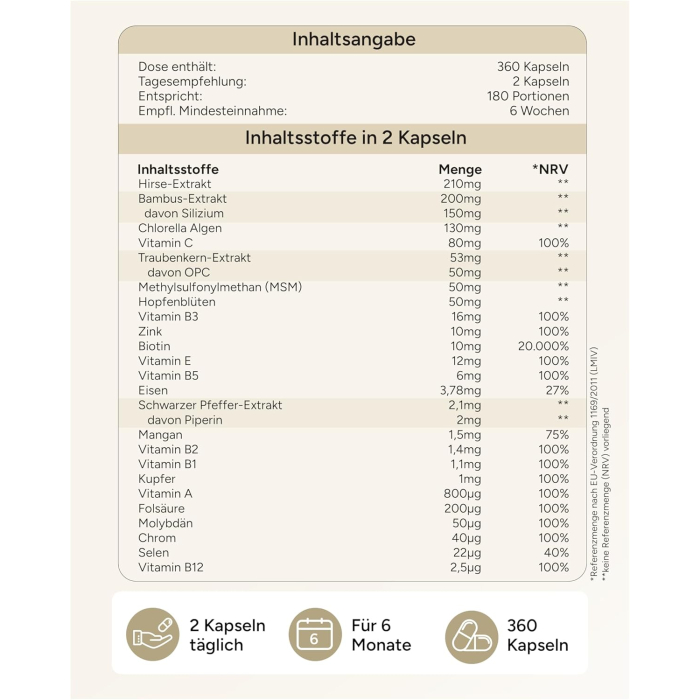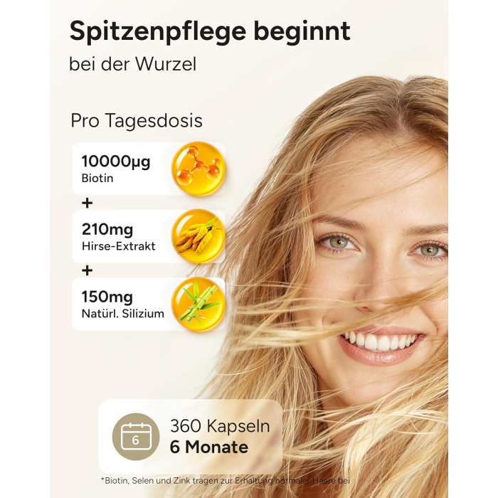 - Value for money: We are committed to providing the best formulas at the best prices. The focus is on evidence-based development and the selection of the right raw materials for our vitamins for hair with biotin and silicon high-dose capsules