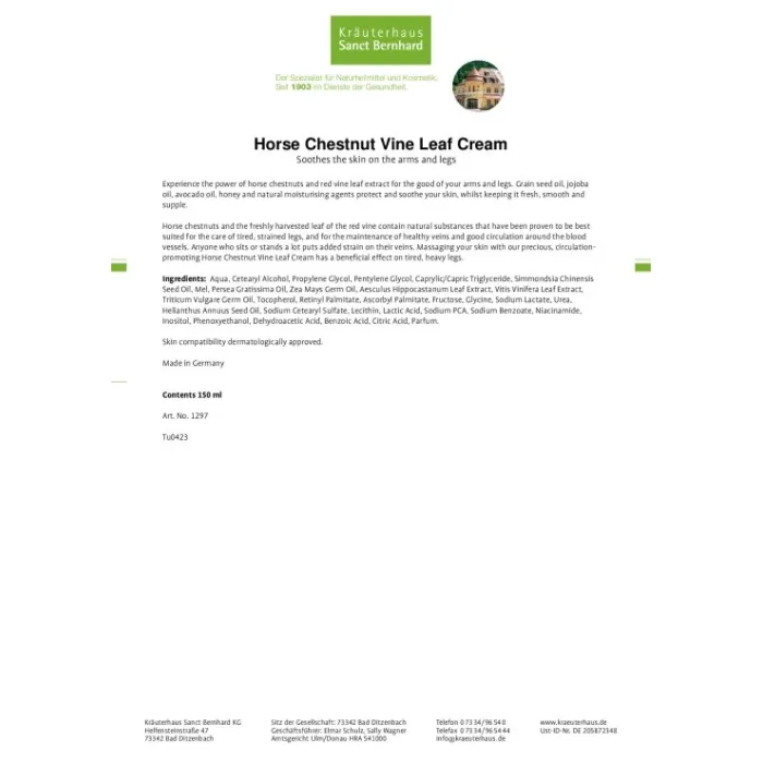 Конский каштан и листья красной виноградной лозы содержат натуральные вещества, которые идеально подходят для ухода за уставшими, напряженными ногами и поддержания здоровых, хорошо снабжаемых вен и кровеносных сосудов. Особенно те, кому приходится много сидеть или стоять, нагружают вены больше, чем обычно.