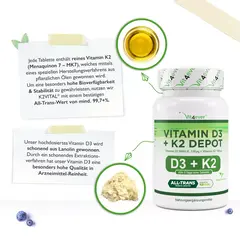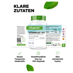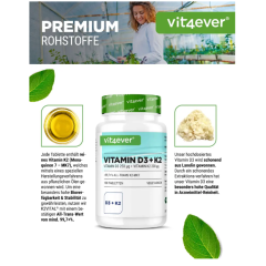 Ощутите преимущества нашего витамина D3 K2 – 100% веганского происхождения. Наша формула депо содержит 500 мкг витамина D3 и 200 мкг витамина K2 на таблетку для эффективного поддержания нормальных костей и зубов. Витамин D поддерживает функцию мышц и иммунную систему, а витамин К2 способствует...