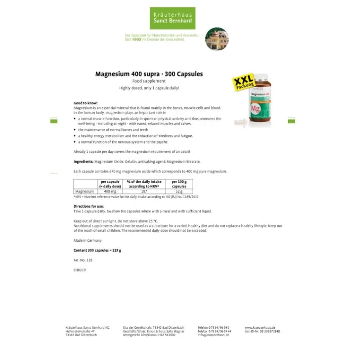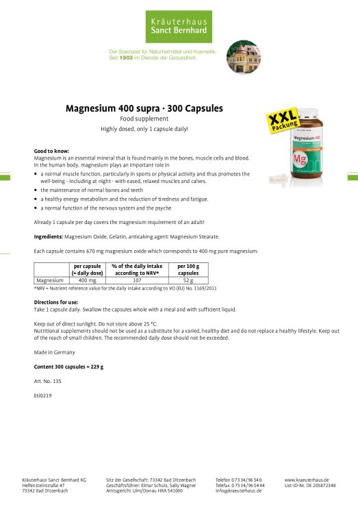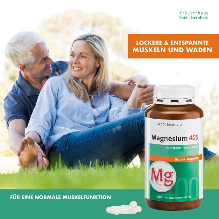 1 capsule contains 400 mg pure magnesium and is enough to cover the daily magnesium requirement for adults!